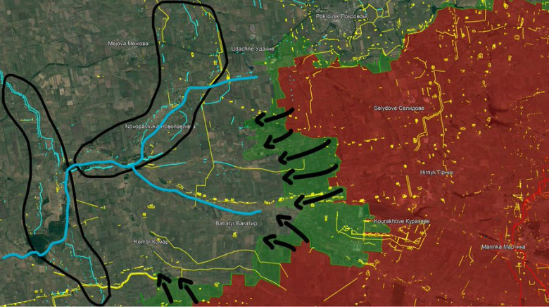 Samal ajal sundis Pokrovski hea kaitse Venemaa relvajõude lõuna poole pöörduma ja rünnata tühja maastikku. Ukraina väed viivitavad Venemaa edusamme, eriti Vovotša vallas, võimaldades jõgedel kaitseliinide ettevalmistamist.
