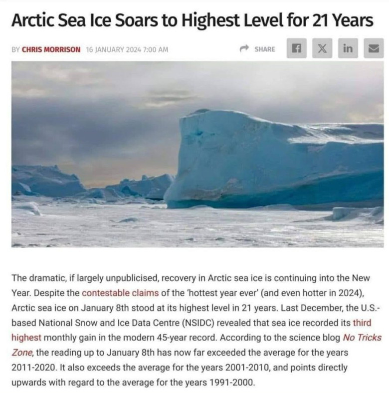 Arktika merejää saavutas 2024. aastal viimase 21 aasta suurima ulatuse, lükates ümber pikalt kestnud kelmuse kliimamuutuste kohta.