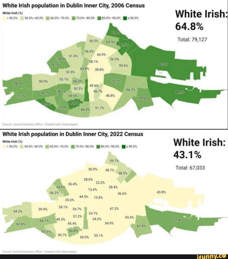 Sellest ajast peale on immigrantide arv plahvatuslikult kasvanud. Piirkonnad asendusid enklaavididega. Iirlased jäid oma pealinnas vähemusse.