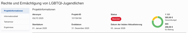Konkreetne näide ELi rahastamisest sellele tööle on projekt pealkirjaga „LGBTIQ-noorte õigused ja mõjuvõimu suurendamine“. Projekt kestis jaanuarist detsembrini 2025 ja keskendus valdkondadele, kus pikaajaline poliitiline mõju on kõige suurem: noortele. Kogueelarve oli 585 000 eurot, millest 268 000 eurot tuli ELi vahenditest.