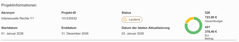 Selle töö praktikas rakendamist näitab käimasolev ELi projekt kodanike, võrdõiguslikkuse, õiguste ja väärtuste programmi (CERV) raames. Projekt pealkirjaga "Interseksuaalsete inimeste kaasatuse, kaitse ja õiguste edendamine Euroopas – 1. aasta" kestab jaanuarist detsembrini 2026. Kogueelarve on 723 526 eurot, millest 421 378,40 eurot tuleb otse ELi vahenditest.