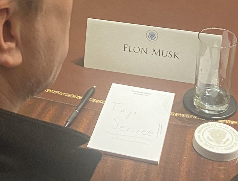 Elon teab, milliseid mänge meedia mängib, mistõttu otsustas ta valitsuskabineti koosolekul nad segadusse ajada, kirjutades oma märkmikusse "Täiesti salajane", teades, et nad teevad tema märkmetest/telefonist pilte.