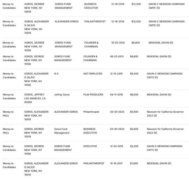 Gavin Newsomit rahastavad George ja Alex Soros.