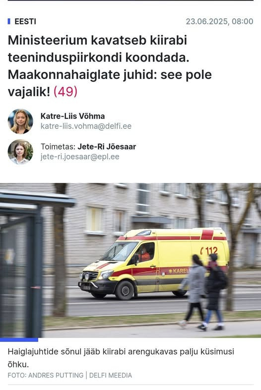 Kujutage nüüd ette, et keegi kuskil Läänemaal näiteks saab herilaselt nõelata ja anafülaktilise šoki, mille vastu aitab ja kiirest surmast päästab ainult kiirabi kiire sekkumine, aga selle asemel, et kiirabi sõidaks välja Haapsalust ja jõuaks napilt abivajajani, hakkab ta selle uue idee kohaselt sõitma näiteks Pärnust.