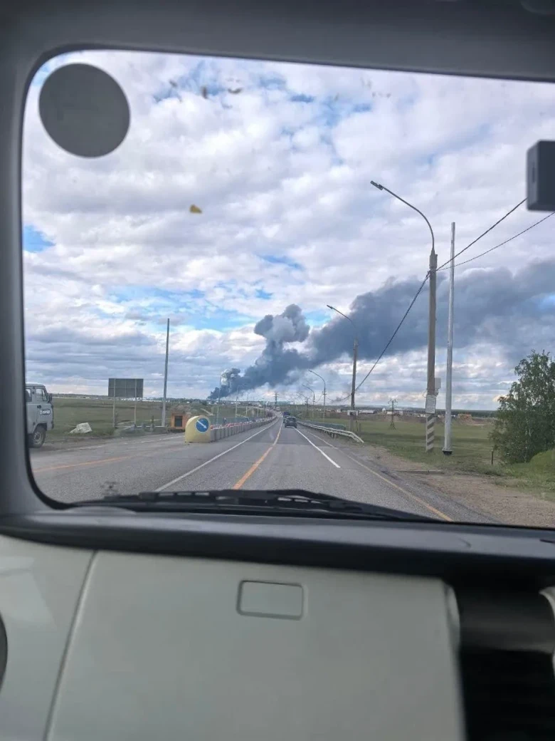 Ühes videos on näha Irkutski oblastis (umbes 4000 km kaugusel Ukraina riigipiirist) asuva Belaya lennuvälja põlemist.
