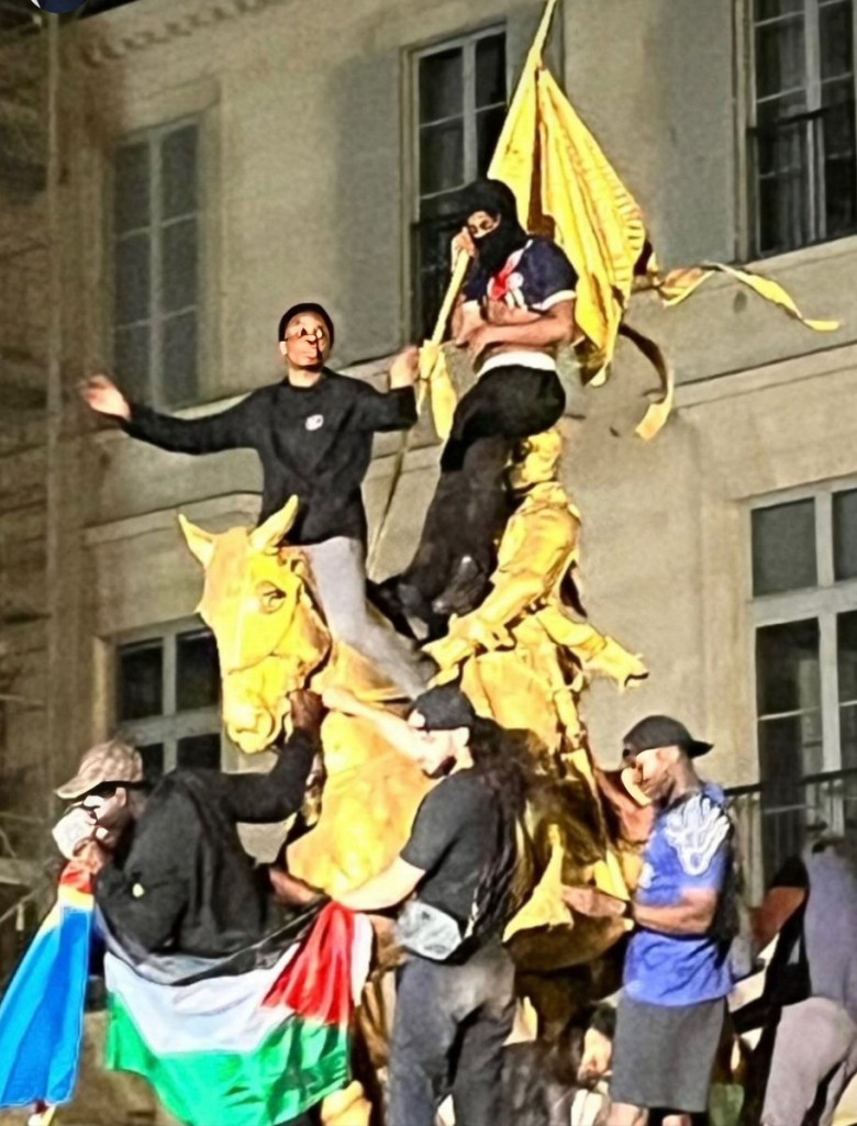 Samal ajal korraldasid Pariisis nädalavahetusel Aafrika ja Araabia noorte jõugud kaks ööd kestnud tuliseid ja vägivaldseid kuritegusi seoses Prantsuse meeskonna jalgpallivõiduga. Kaks inimest hukkus ja sadu sai vigastada. Mitmekesisust tähistati jõuliselt, et etnilised noored – üks neist kandis Palestiina lippu – rüvetasid Jeanne d'Arci kuju. Prantsuse parlamendiliige Marion Maréchal kommenteeris säutsus, mis sisaldas pilti õõvastavast vaatepildist: „Keegi ei saa enam väita, et nii jätkates liigume helge tuleviku poole, kus valitseb rahu ja rahvuslik ühtekuuluvus. Trajektoori muutmine on hädavajalik ja kiireloomuline.“