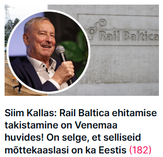 ERR vahendab: “Siim Kallase sõnul takistavad Rail Balticu ehitust Balti riikides niinimetatud rahvuslikud huvid, mis asetavad omad huvid kõige ette ja tahavad teiste arvelt kasu lõigata. Kallas rõhutas, et Rail Baltic on Euroopa projekt, mille elluviimiseks on vältimatu Euroopa Liidu jõuline juhtimine.