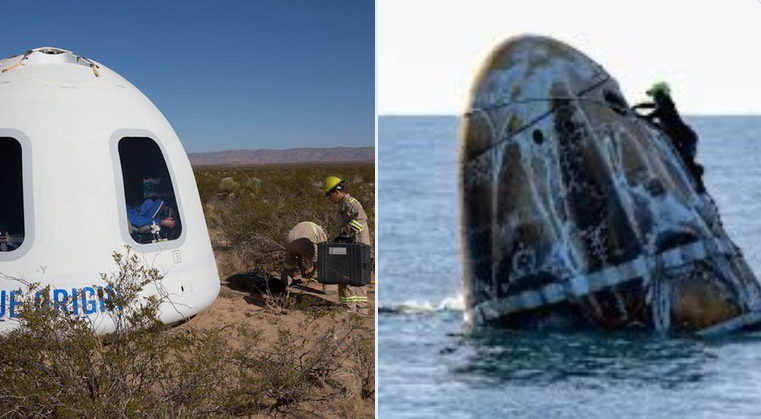 Pildil on Blue Origini suborbitaalse raketi New Shepard meeskonnakapsel pärast selle maandumist 14. aprillil 2025. Sellel konkreetsel lennul NS-31 oli naissoost meeskond, sealhulgas kuulsused nagu Katy Perry ja Gayle King. Peamised üksikasjad New Shepardi kohta: