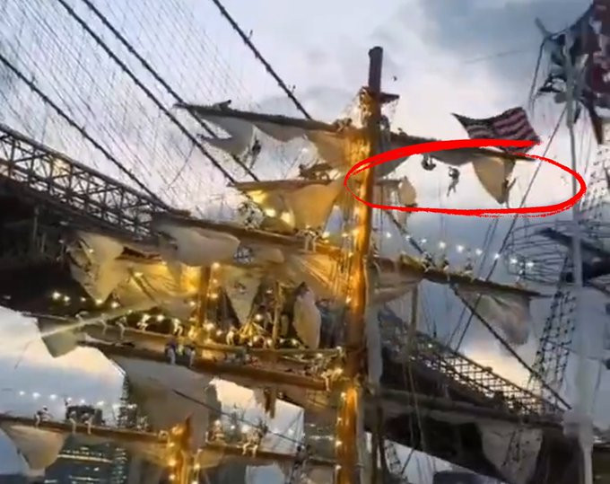 NEW: Video shows sailors on the masts of the Mexican Navy ship Cuauhtémoc before it hit the Brooklyn bridge. #PuenteDeBrooklyn #Barco #boat pic.twitter.com/gW5GXBfp1a