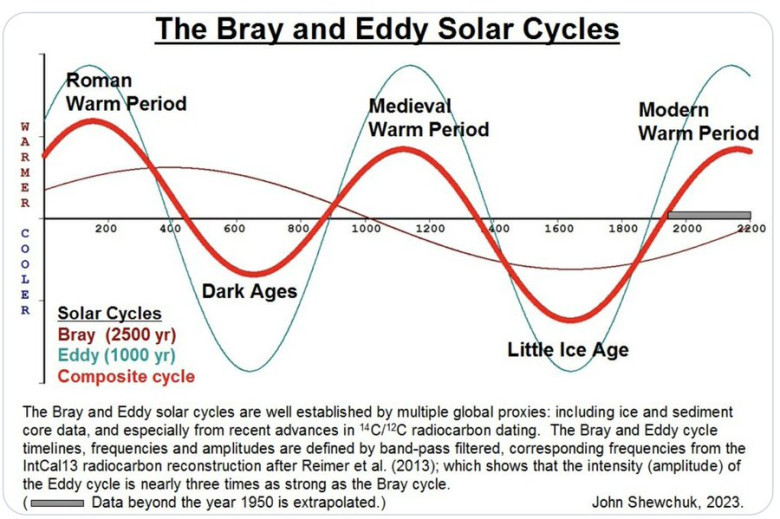5. Eddy tsükkel on 1000 aastat ja Bray tsükkel 2500 aastat. Need interakteeruvad, moodustades kombineeritud kõrg- ja madalaimaid hetki, nagu Rooma soe periood, väike jääaeg jne.