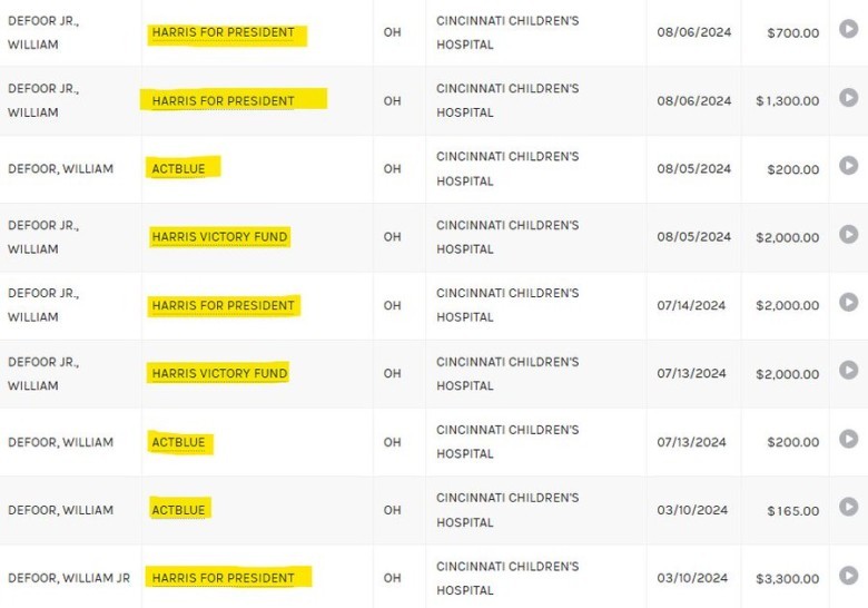 Tema vasakäärmuslasest isa on annetanud Harrisile tuhandeid dollareid.