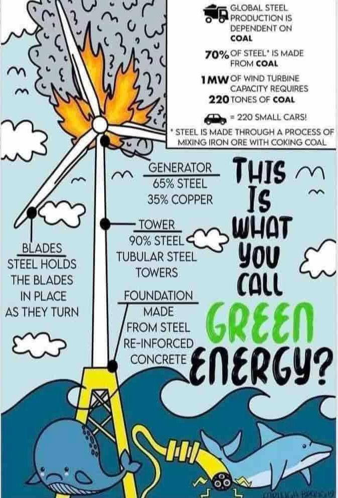 Tuuleturbiinid sõltuvad täielikult söest. 70% terasest valmistatakse rauamaagist söe abil.