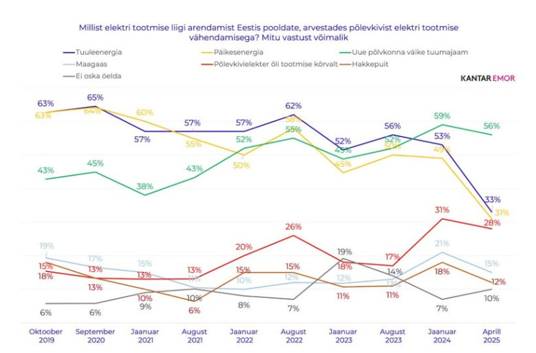 Hea kokkusattumusena avaldas täna uuringu KantarEmor ja sellest selgus, et toetus tuumaenergia arendamisele on püsivalt kõrge, kuid toetus tuule- ja päikeseenergia tootmisele on järsult langenud. Selle põhjus on ilmne - kuna energeetika teemad on ühiskondlikus debatis viimasel ajal olulised olnud, on aina enamatele inimestele saanud selgeks, et vaatamata jõulisele propagandale ei tule tuulest ja päikesest odavat elektrit ning lisaks sellele on neil väga negatiivne mõju nii inimeste elukeskkonnale kui loodusele.