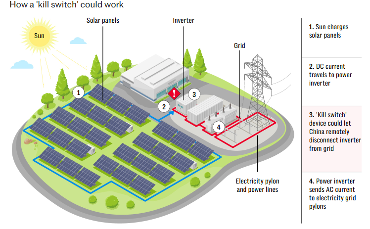 Üks allikas ütles Reutersile, et sellise varustuse ohtu seadmine annaks Pekingile võimaluse lääneriikidele elektrikatkestusi tekitada, väites, et see looks „sisseehitatud viisi elektrivõrgu füüsiliseks hävitamiseks“.