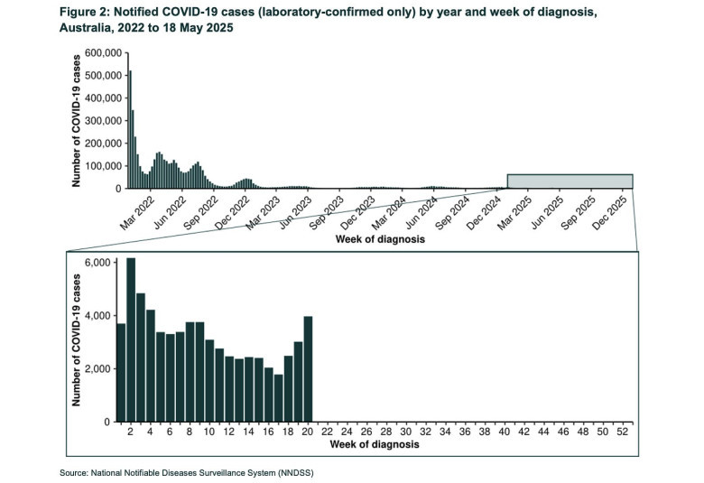 Selgitus: „Griffithi ülikooli andmetel moodustab variant NB.1.8.1 Victorias üle 40%, Lääne-Austraalias ja Uus-Lõuna-Walesis umbes 25%, Queenslandis umbes 20% ja Lõuna-Austraalias alla 10% testitud COVID-juhtudest,“ teatab ABC.